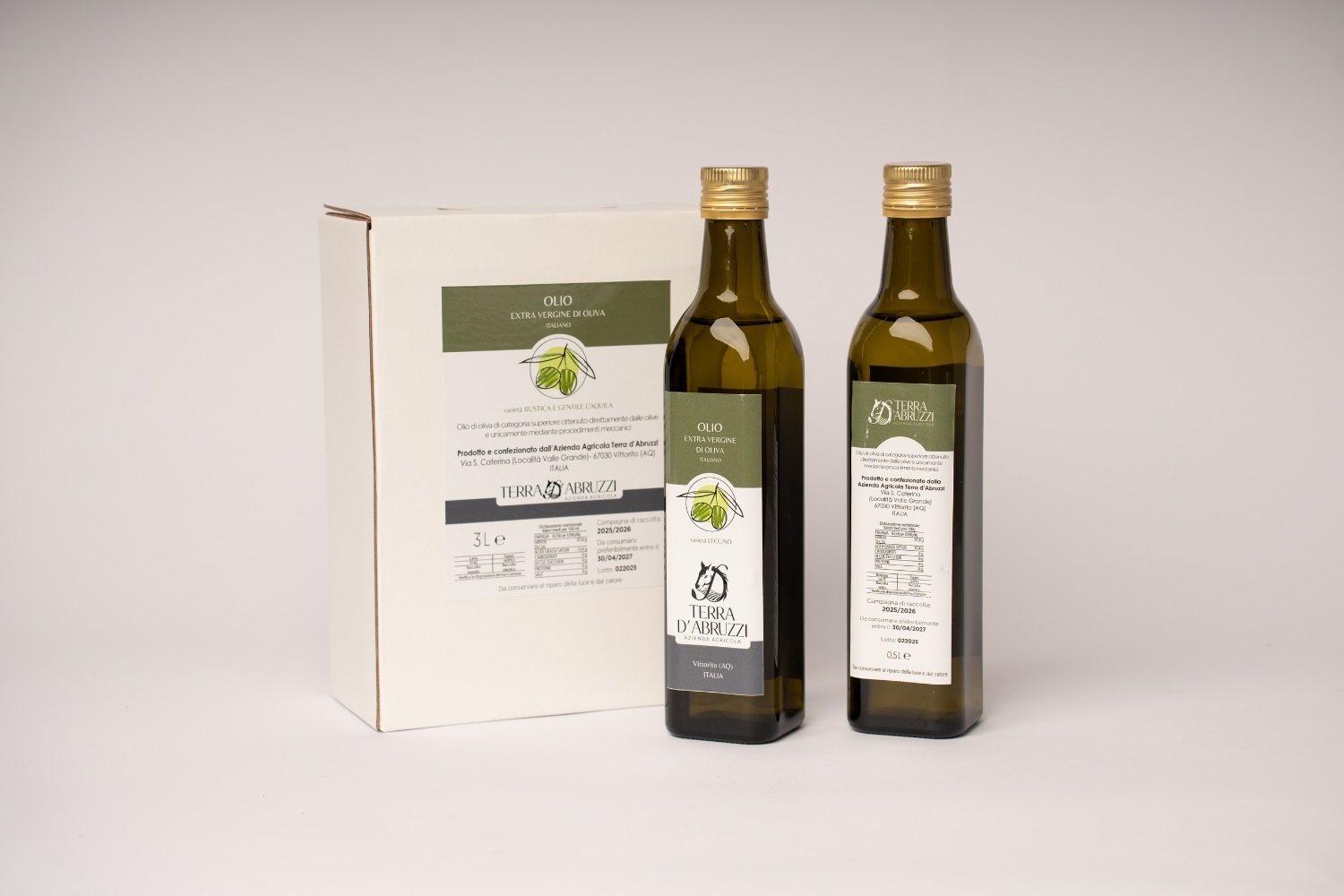 Coltivato a Vittorito, nel cuore dell’Abruzzo – la regione verde d’Europa – il nostro Olio Extravergine di Oliva Leccino nasce da uliveti curati senza l’uso di concimi chimici o trattamenti industriali. Utilizziamo esclusivamente letame naturale, nel pieno rispetto del ciclo della terra e dei suoi tempi.