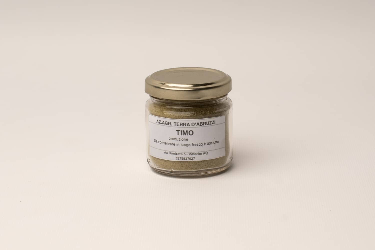 Il nostro timo selvatico, raccolto spontaneamente nelle aree collinari di Vittorito, conserva un profumo intenso e balsamico. Nessun trattamento, nessun concime: solo sole, vento e terra abruzzese.